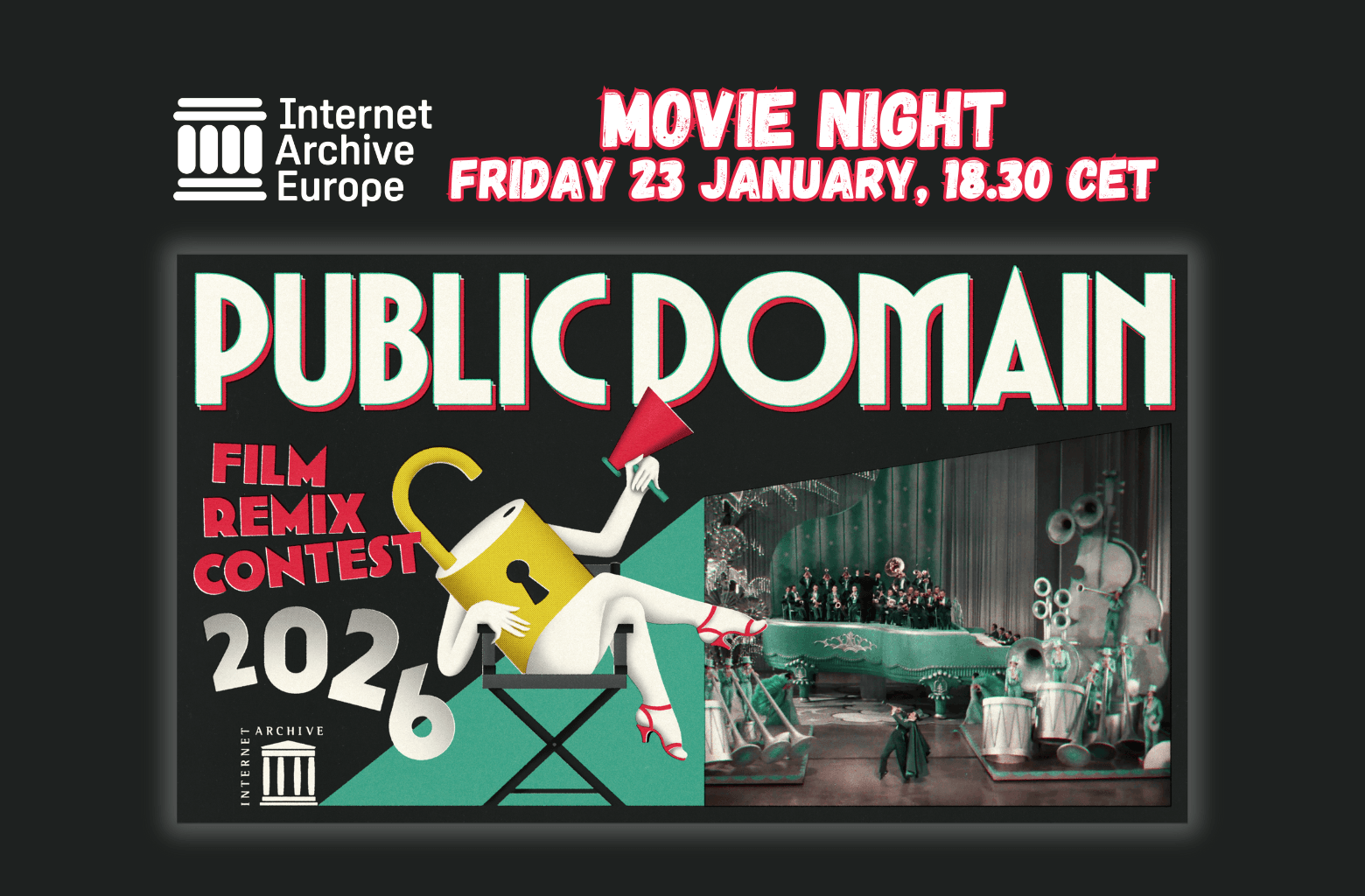 On January 1, 2026, a new wave of cultural treasures entered the public domain. To celebrate this moment, Internet Archive Europe is bringing the spirit of Public Domain Day to Amsterdam with a special Public Domain Movie Night, while spotlighting the creativity of filmmakers from around the world through the Public Domain Film Remix Contest.