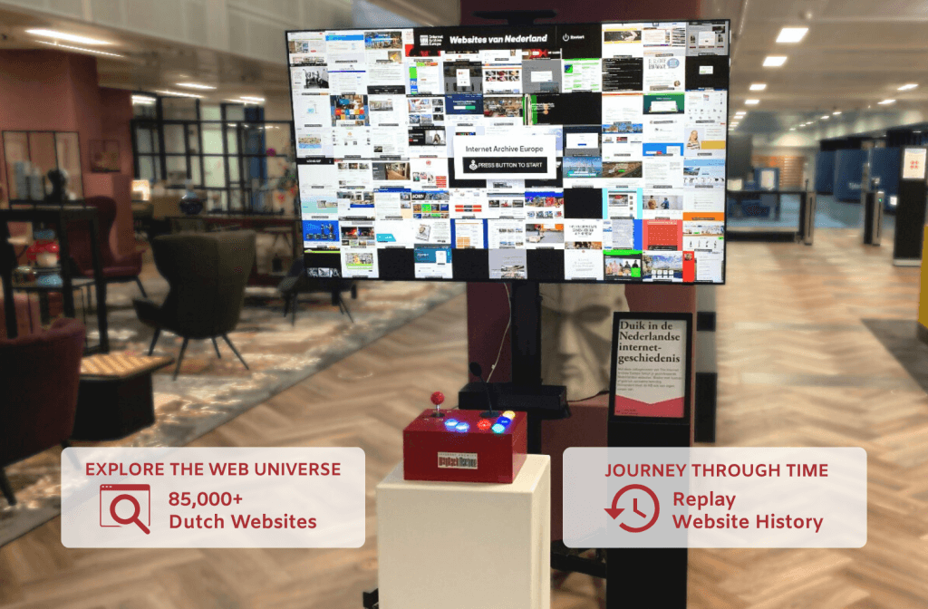 On September 17th, we were proud to unveil a new way to interact with digital history at the KB, the National Library of the Netherlands. Our new interactive installation, “Websites van Nederland: explore the web of the past,” is now open to the public, offering a playful and profound journey into the Dutch internet archive.